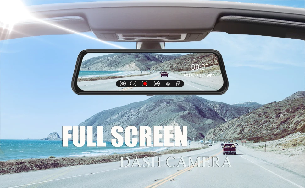 【10 INCH LARGE STREAMING MEDIA TOUCH SCREEN】10 inch streaming media rearview mirror features a Full HD IPS touchscreen allows you to see more traffic information. With an 170°ultra-wide lens to cover the entire road ahead and capture all the critical details like license plates and signposts, etc. All operations can be easily navigated by swiping your fingers with touchscreen and it works as a normal rear view mirror after screen saver is on.